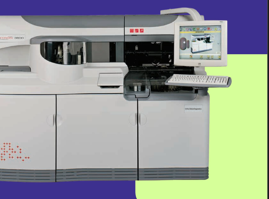 Vitros® 3600 Sistema de imunodiagnósticoO Sistema de Imunodiagnóstico VITROS® 3600 oferece mais de 40 testes de imunoensaio de classe mundial nos principais perfis de diagnóstico, incluindo cardiologia, doenças infecciosas, oncologia, tireoide, metabolismo, endócrino e anemia. Possui tecnologia MicroWell com detecção de quimioluminescência amplificada que permite amplas faixas dinâmicas com exatidão e precisão excepcionais, em vários estados de doença. Minimize diluições, repetições e novas amostras. A tecnologia Intellicheck® fornece controle de processo em tempo real com rastreabilidade totalmente documentada para minimizar o risco de um resultado errôneo. A tecnologia MicroSensor aumenta o controle de custos e a eficiência por meio da detecção automática e alerta de interferência endógena, sem comprometer a pontualidade do resultado ou o fluxo de trabalho do operador.
